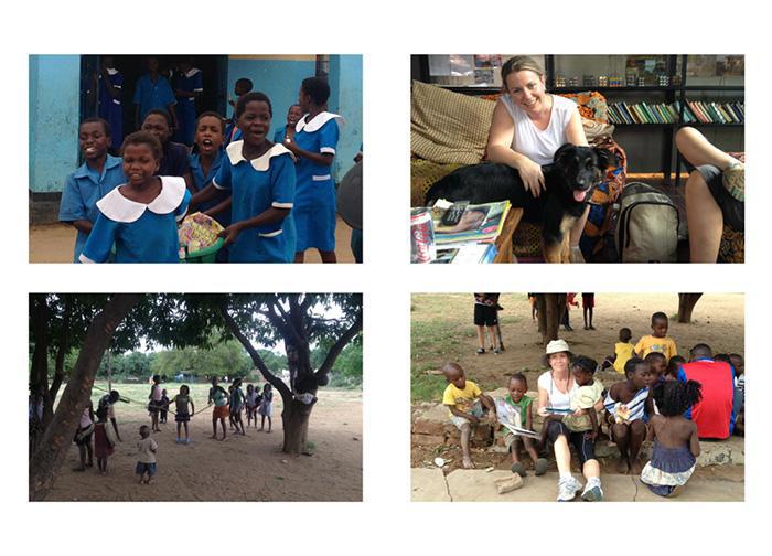 After-school care and story time... kids in Africa like Cat in the Hat! Beretta helped us. He's the one with the pink tongue and no school uniform.